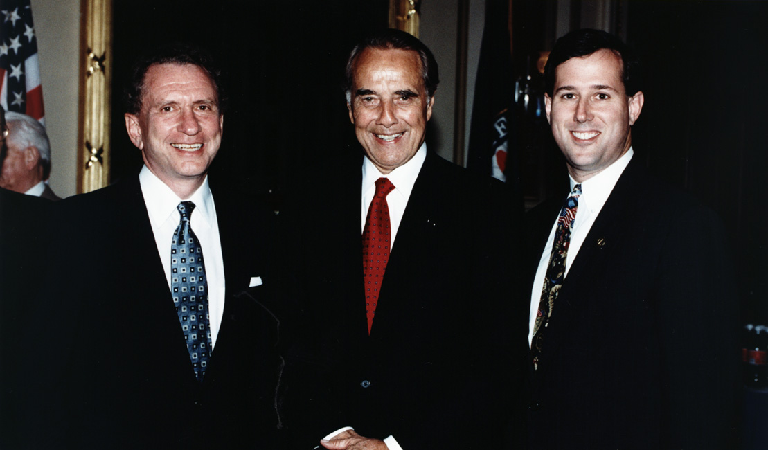 Bob Dole with Senators Arlen Spencer and Rick Santorum at retirement party