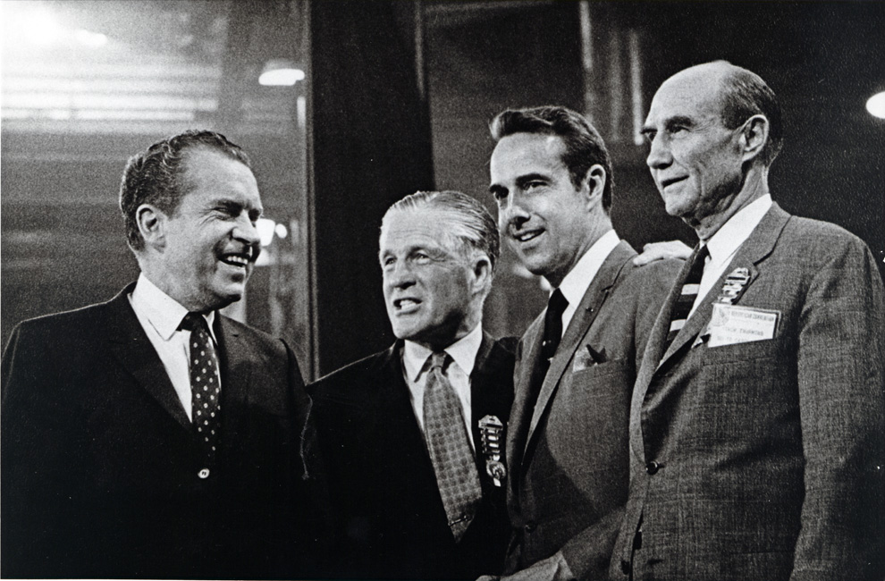 Bob Dole speaking with George Romney, Richard Nixon and Strom Thurmond