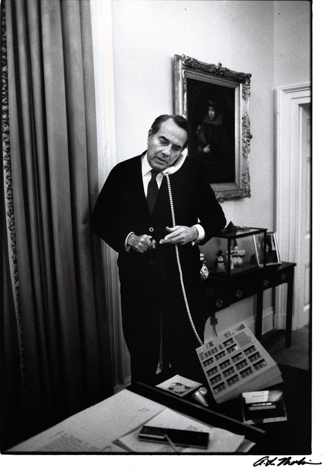 Bob Dole on phone in office