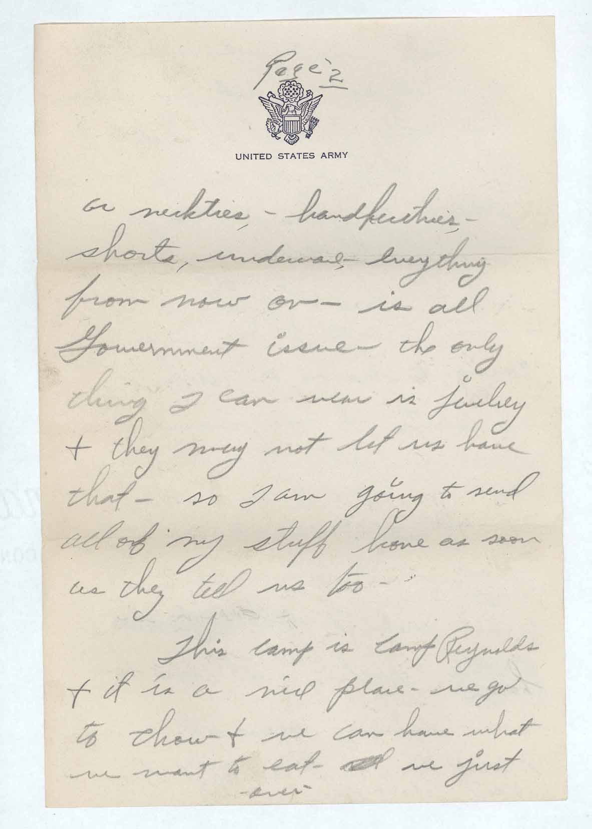 or neckties – handkerchies [sic] – shorts, underware – everything from now on – is all Government issue – the only thing I can wear is jewelry & they may not let us have that – so I am going to send all of my stuff home as soon as they tell us to.