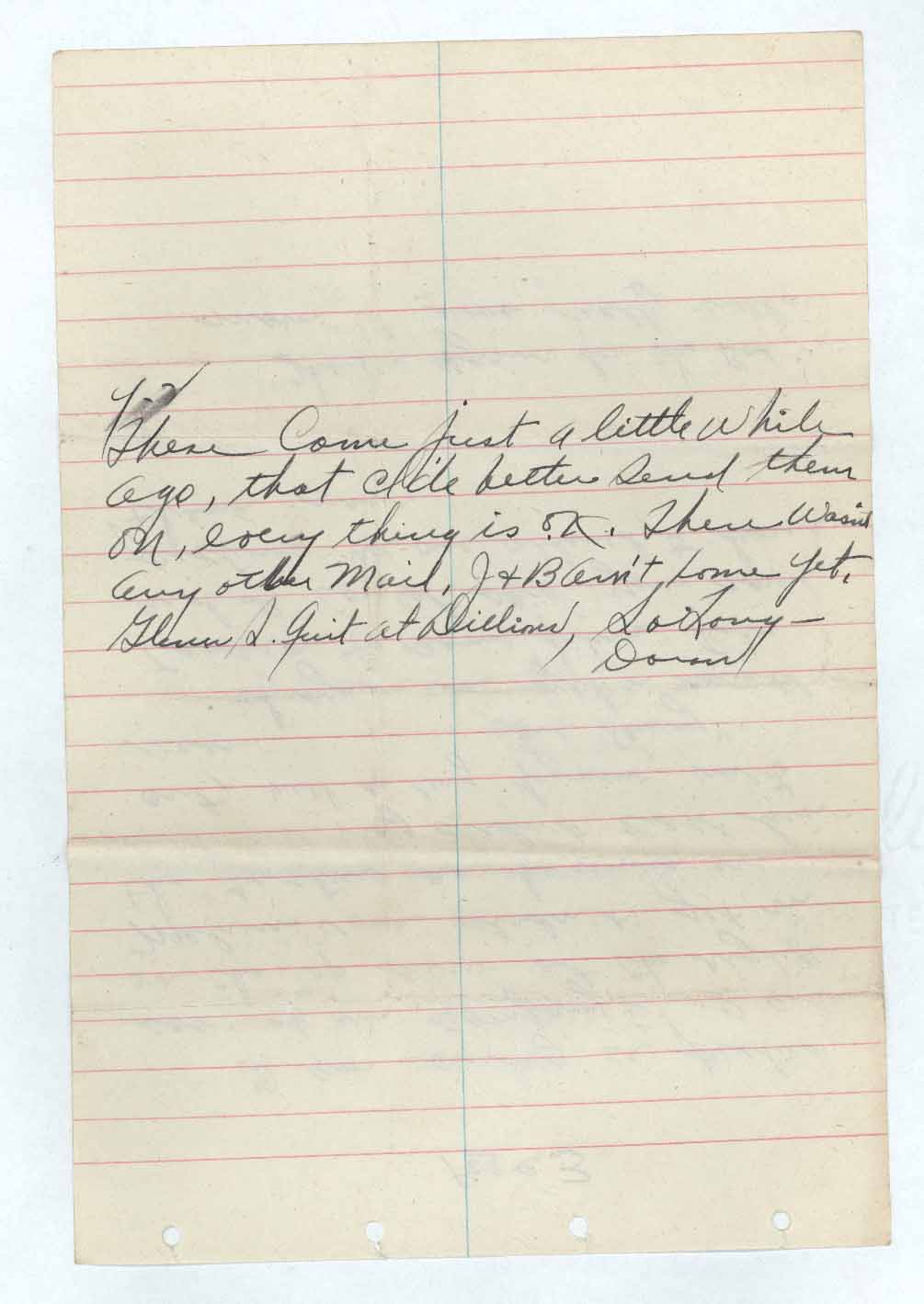 These Come just a little while ago, that I’d better send them on, everything is o.k. There wasn’t any other Mail. J & B aren’t home yet, Glenn S. quit at Dillions, So Love –