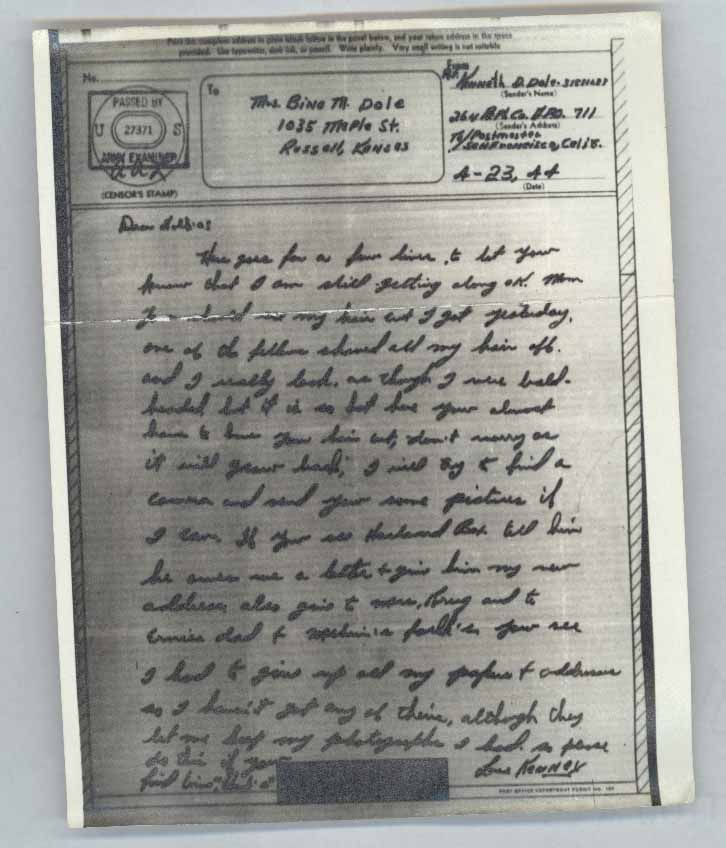 Kenneth Dole to Folks | Dole Archive Collections