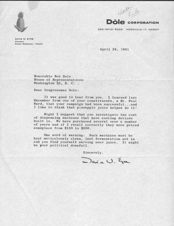 Dole Pineapple Letter | Dole Archive Collections