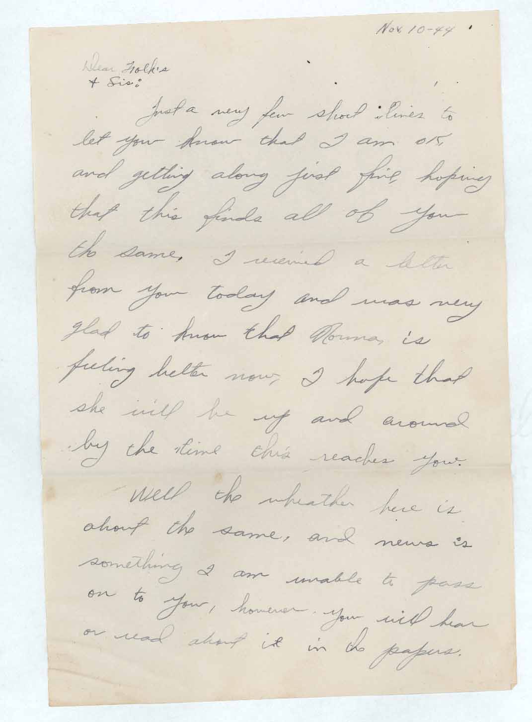 To: Folks & Sis 1944_11_10