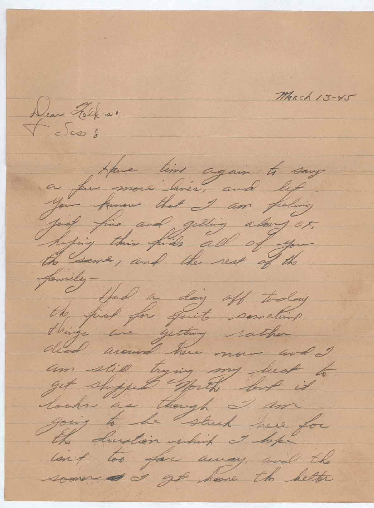 To: Folks and Sis 1945_3_13