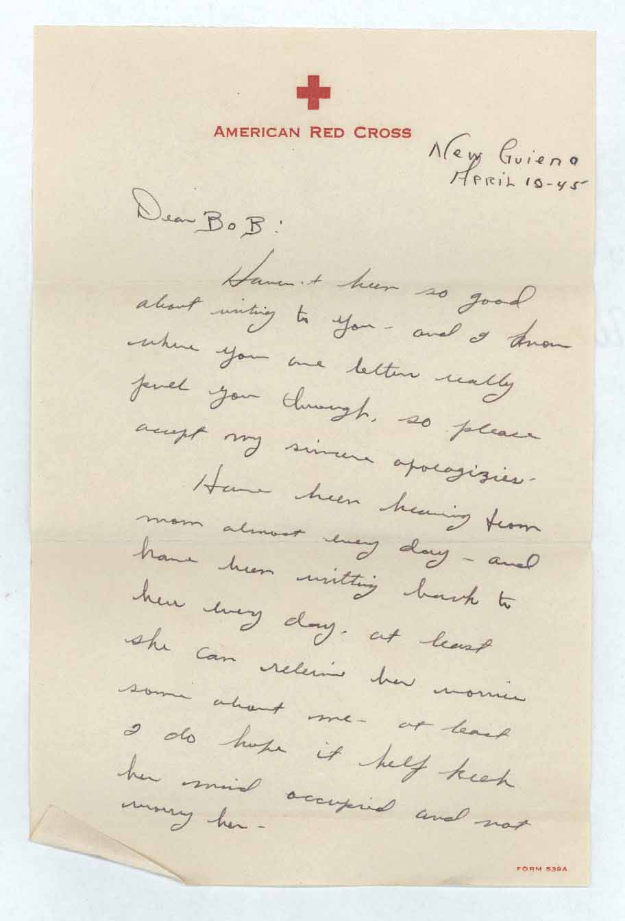 Haven’t been so good about writing to you- and I know where you are letters really pull you through, so please accept my sincere apologizies [sic].