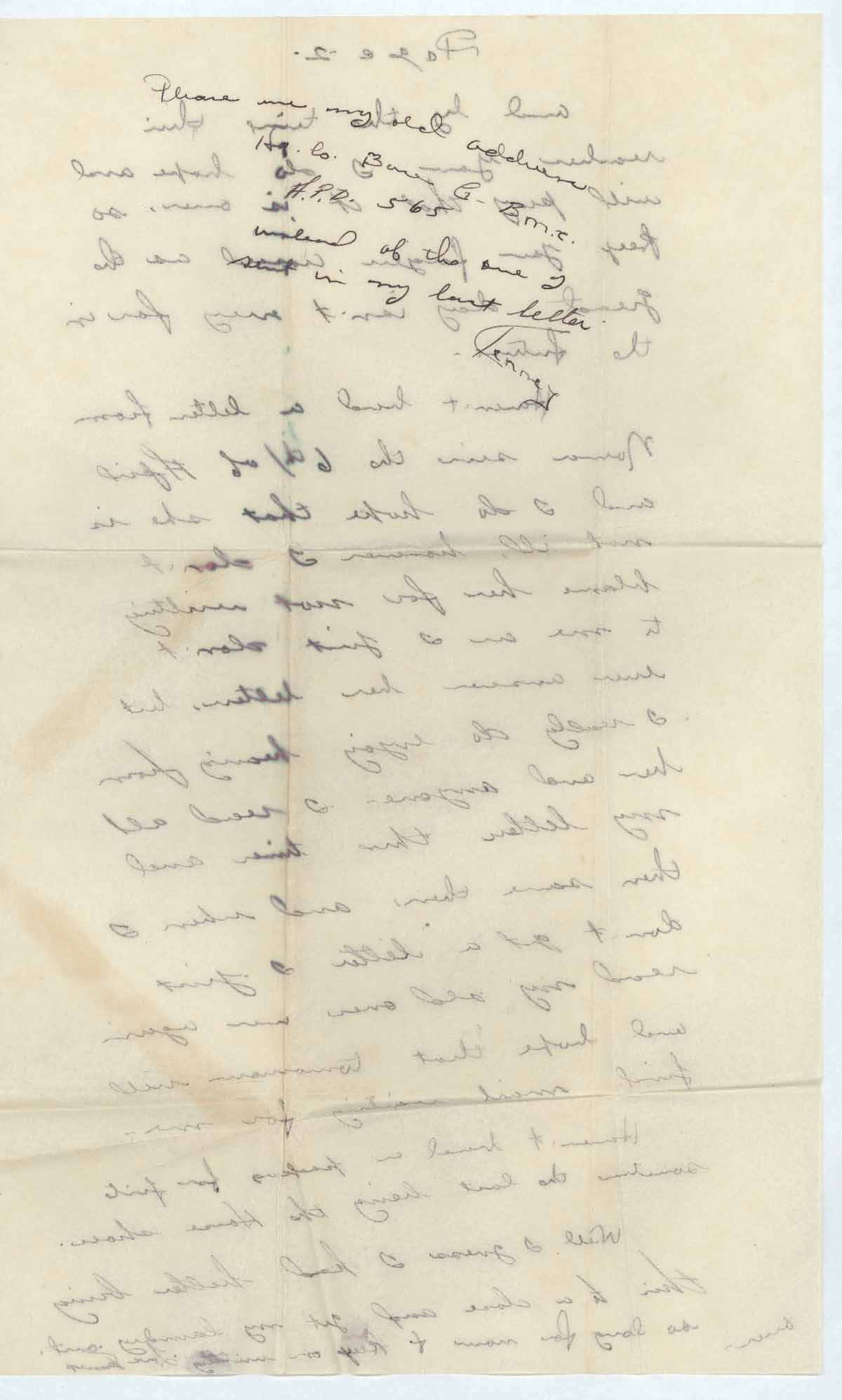 I gave you my new address in one of my last letters and I am sorry to inform you that it was incorrect and I still have to use A.P.O. 565- Hq. Co. Base G. The only reason I can think of for changing it again is that the place we were going hasn’t been taken yet or the orders have been held up anyhow I cannot have my mail sent to A.P.O 718 as it hasn’t been officially – published by the Curror [sic].