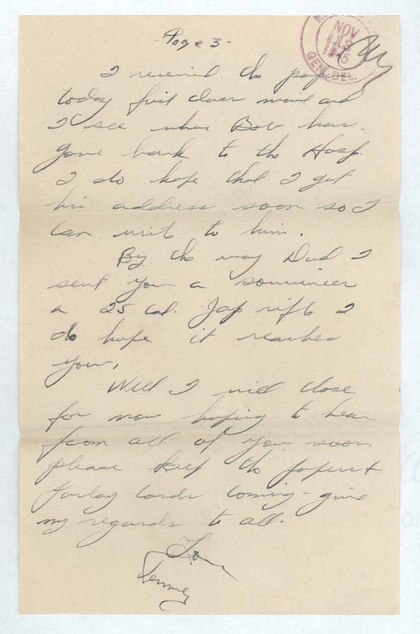 By the way Dad I sent you a souvinier [sic] a 25 cal. Jap rifle I do hope it reaches you.