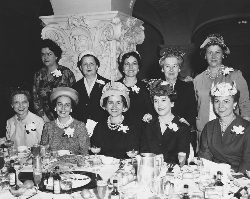 5 women standing, 5 women sitting at a dinner table | Dole Archive Collections