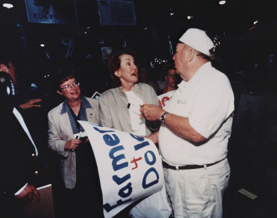 Marvin Farmer holding a 'Farmer 4 Dole" sight | Dole Archive Collections