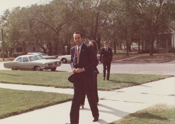 Item 8: Dole walking on sidewalk on Election Day, 1974-11-05