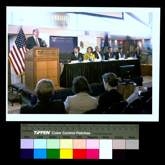 Bob Dole Monitoring the Bipartisan Leadership Forum on Health Care Policy at the Dole Institute | Dole Archive Collections