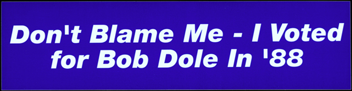 "Don't Blame me- I voted for Bob Dole in '88" Bumper Sticker
