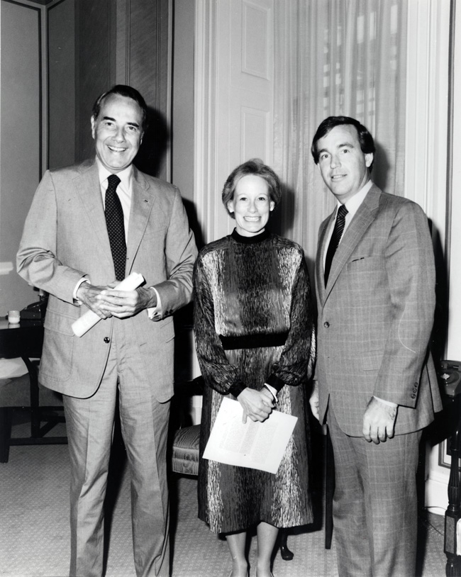 Bob Dole, Nancy Kassebaum-Baker and John Carlin standing in office