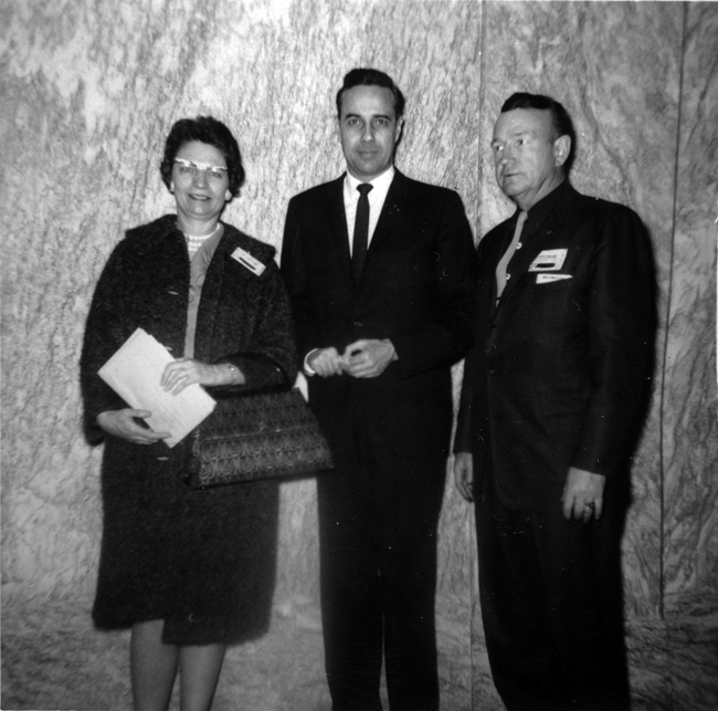 Item 1: Bob Dole and John and Lorain Bedinger of Wichita, KS. 3/18/1963. Inscriptions: Rep Bob Dole; John and Lorain Bedinger; 2318 University Wichita, Kansas Mar 18 1963.