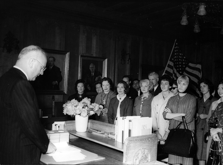 Folder 1: Butler, Virginia Mayor of Zurich Switzerland, E. Landolt posing With Congressional Secretaries 10-05-1963 Congressional Secretaries Trip Zurich (6 images)