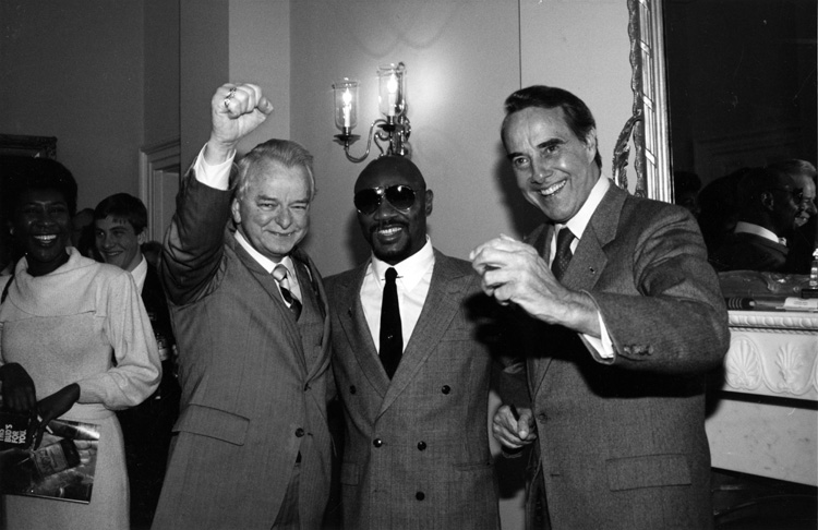 Robert Byrd and Bob Dole putting their fists in the air | Dole Archive Collections