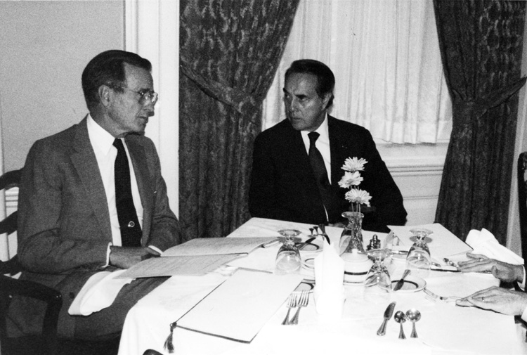 George H.W. Bush sitting at the table with Bob Dole