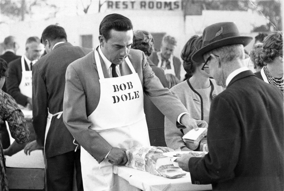 Bob Dole serving sandwiches wearing an apron | Dole Archive Collections