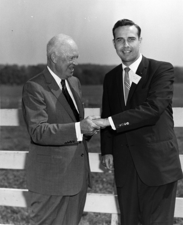 Dole and Eisenhower shake hands next to fence | Dole Archive Collections