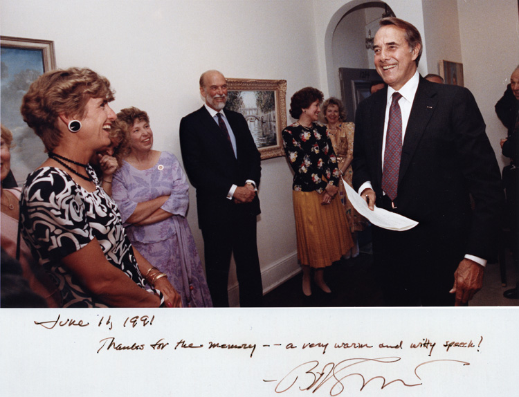 Item 2: Dole Smiling at Bob Ellsworth's birthday party. 6/11/1991. Inscriptions: Front: June 11, 1991 Thanks for the memory-- a very warm and witty speech! Bob Ellsworth Back: Robt. Ellsworth Birthday Party Photo copyright by Focused Images.