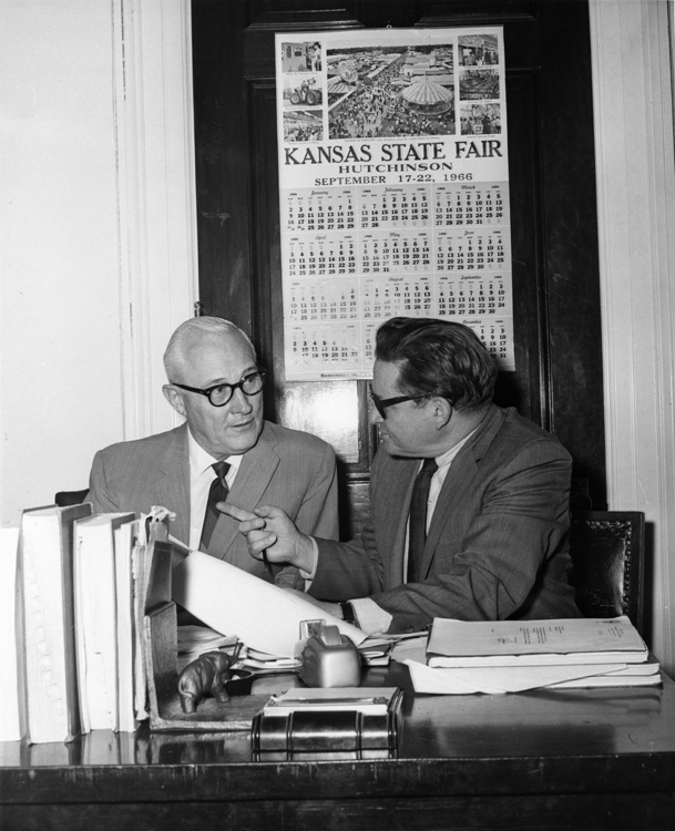 Inscriptions: Back: Kats, Bill, Administrative assistant conferring with Freeburg, Charlie, Administrative asst. to Congressman Mize of Kansas