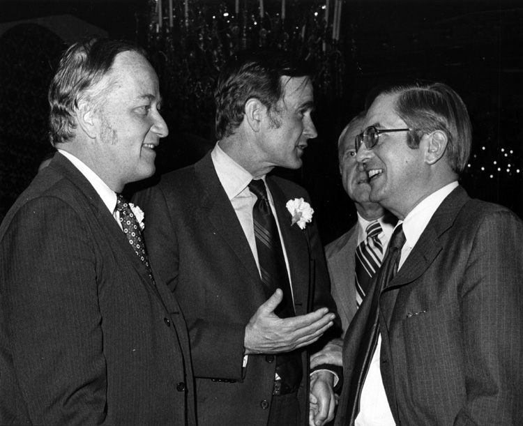 George H.W. Bush conversing with Charles Mathias and Larry Winn, Jr. | Dole Archive Collections