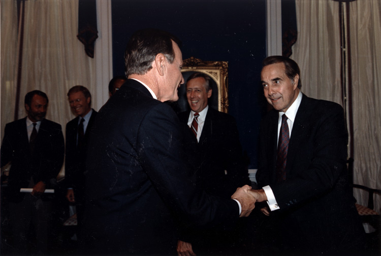 Sen Dole and Pres Bush shaking hands