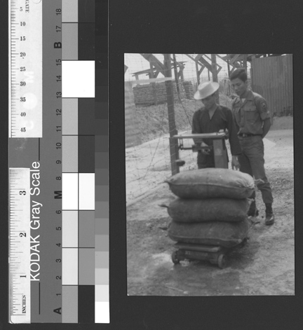 Worker pushing burlap bags | Dole Archive Collections