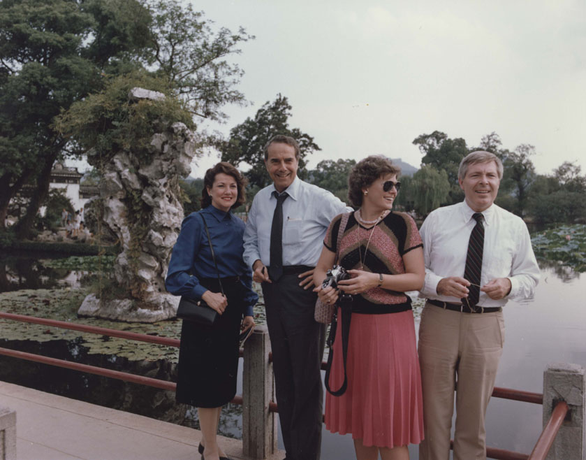 The Doles posing with two others in front of water | Dole Archive Collections