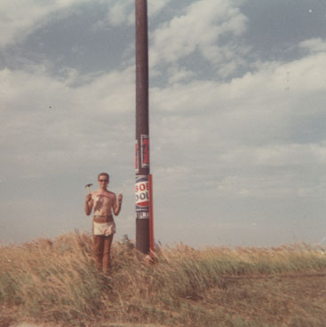 Item 5: Staffer, hammer, and campaign sign in a field, 1968