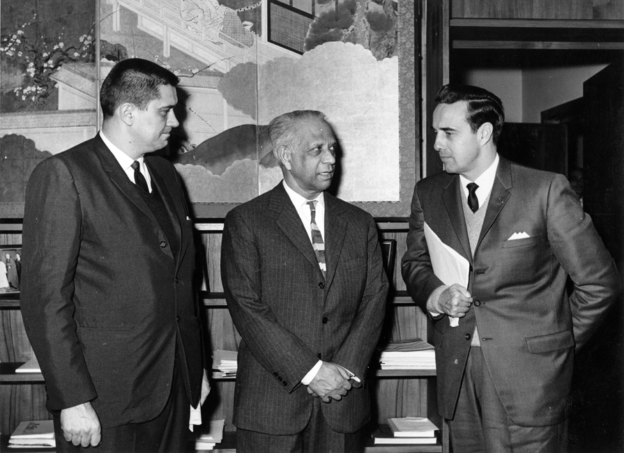 Inscriptions: Back: L-R Hyde Murray, Dr. B.R. Sen, Director General of FAO, Rep. Bob Dole (R. Kans) at U.N. Food and Agriculture Organization Rome, Italy, Nov- 1965 Property of Hyde Murray 432 Roser Rd Washington, Md. 20744 March 18, 1996