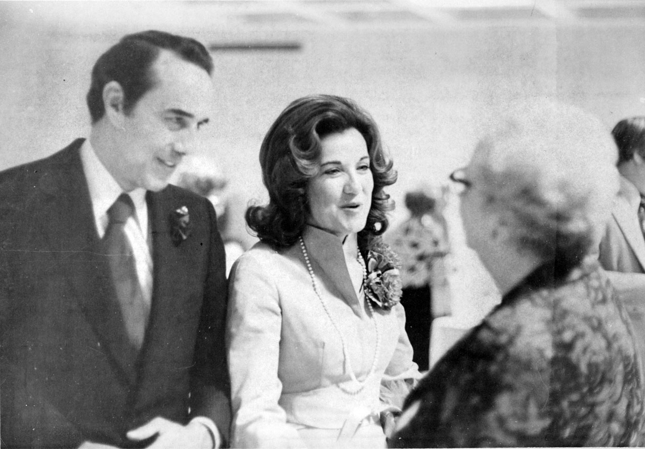 Bob and Elizabeth Dole smiling at wedding reception | Dole Archive Collections