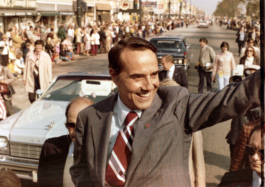 Bob Dole smiling and waving in parade | Dole Archive Collections